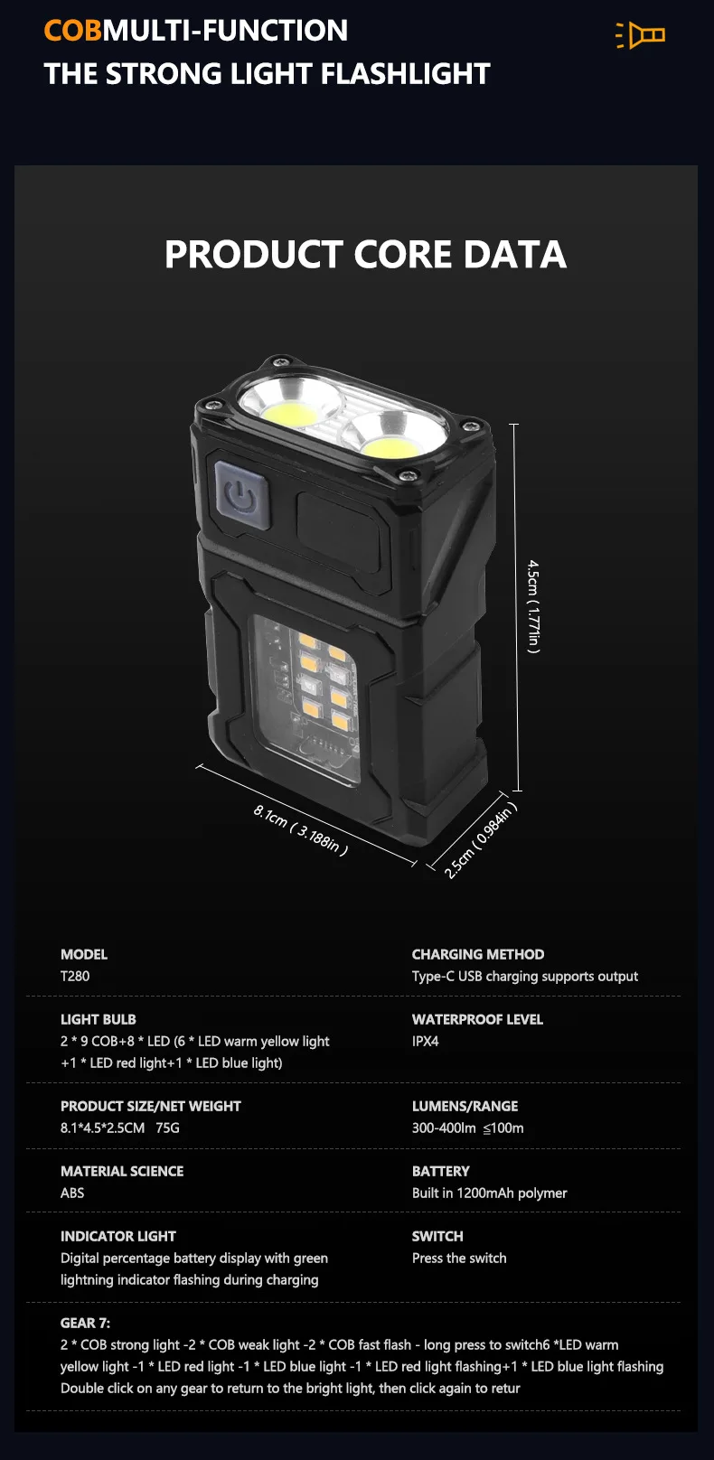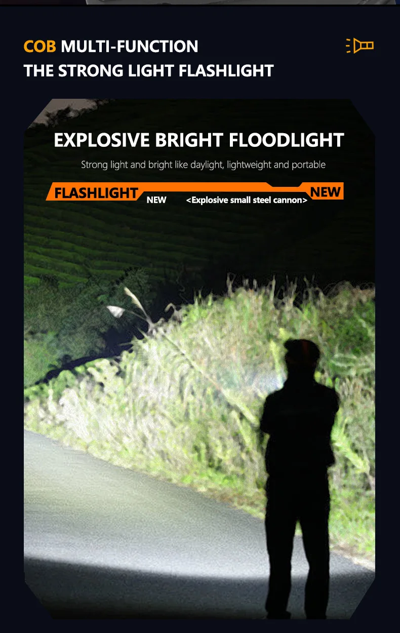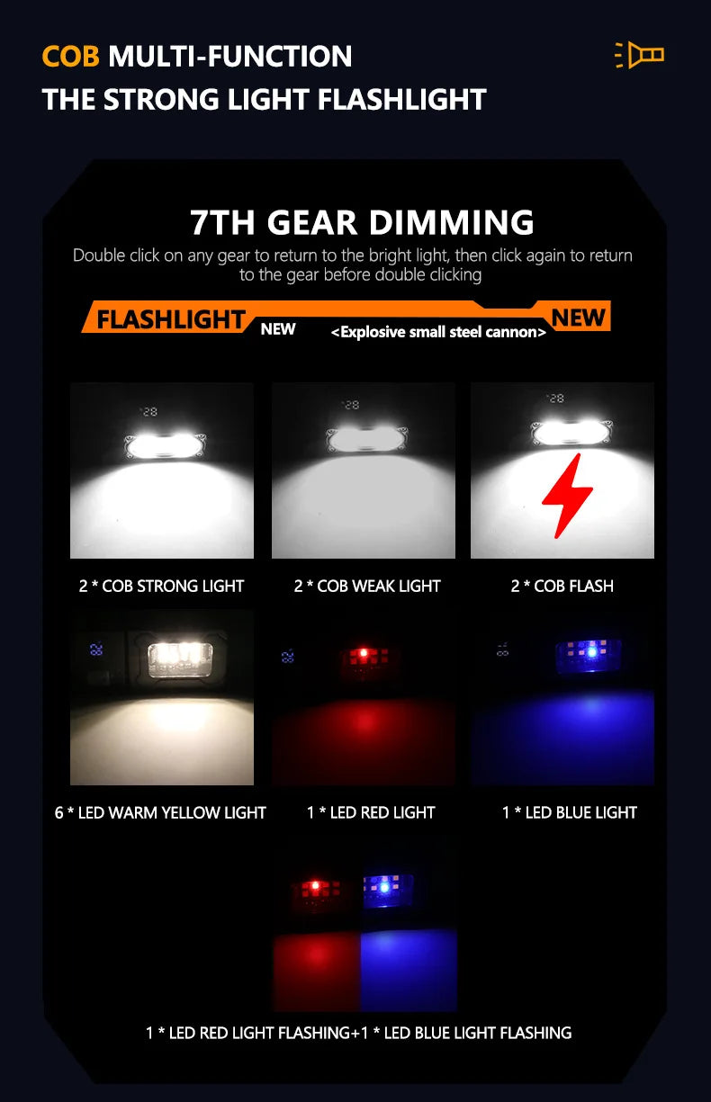 Light Mode:Click switch:Strong Light-Middle Light-Flash Light;Doube click to high light