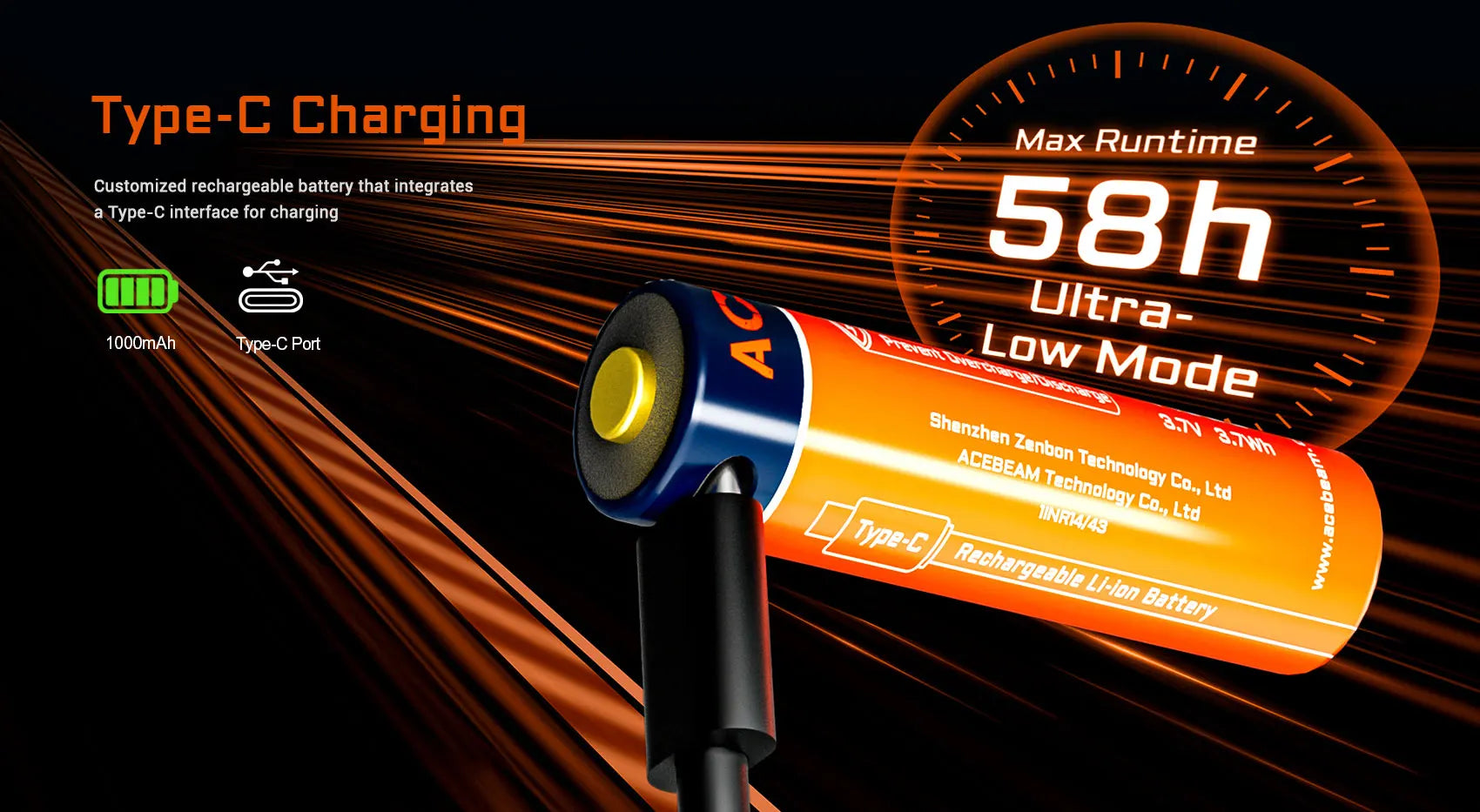 1 x ACEBEAM 14500 Li-ion USB-C Rechargeable Battery