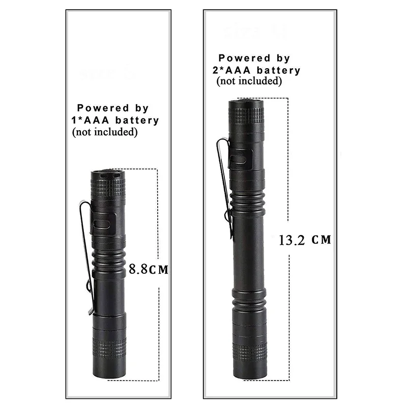 portable pen light: with a clip, easy to carry, only 8.8-13.2cm long.