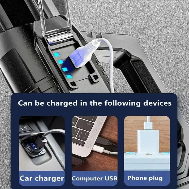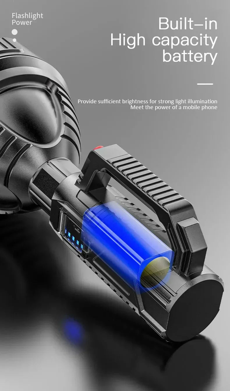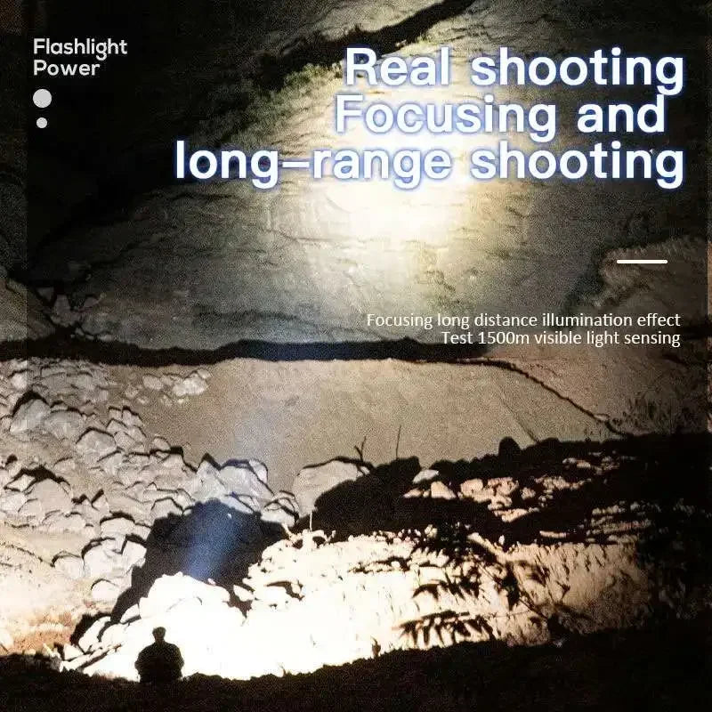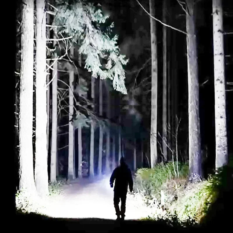 【Focused long-range flashlight】: High-lumen and bright flashlight, using P100 LED chip, strong focused beam, lighting distance range of more than 800~100 meters, built-in large-capacity 18650 rechargeable lithium battery, continuously releasing brightness all night long!