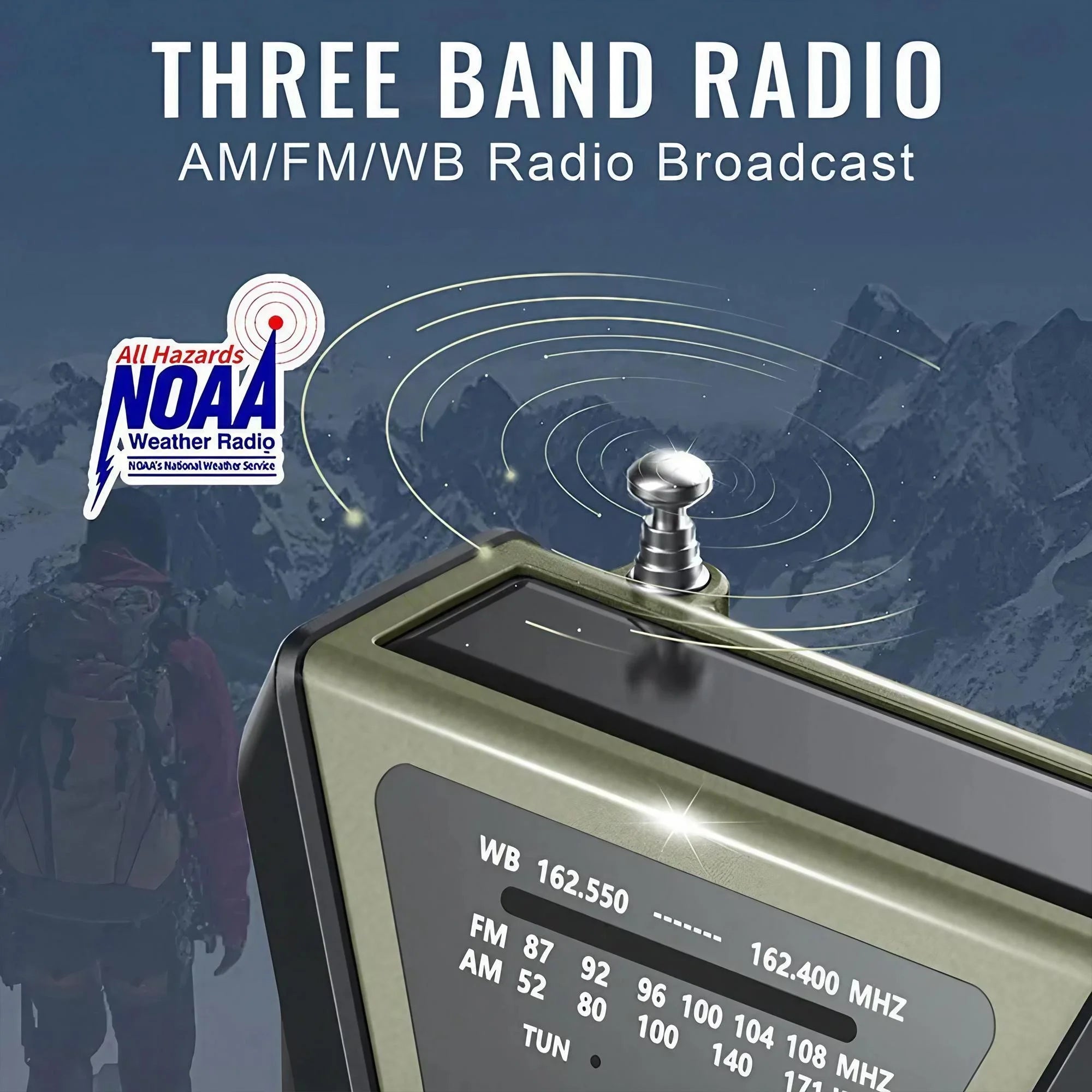 1.Multi-function power radio. By tuning to AM, FM and WB frequencies, this portable powerhouse ensures you stay connected, informed and entertained on every adventure (WB mode is only available in North America)
